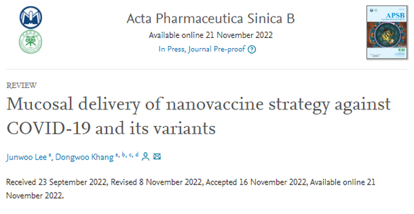 가천대학교 의과대학 강동우 교수와 이준우 학생 연구팀은 나노전달체의 비강 점막 내 흡수가 전신면역과 상기도 점막 면역을 동시에 유도하여 향후 COVID-19 백신의 새로운 플랫폼으로 활용될 수 있다는 연구결과를 발표하였다.