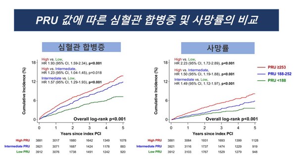 관찰 결과 혈소판 응집도 수치가 높은 환자의 시술 후 예후가 좋지 않고 사망률이 높다는 것을 확인했다.