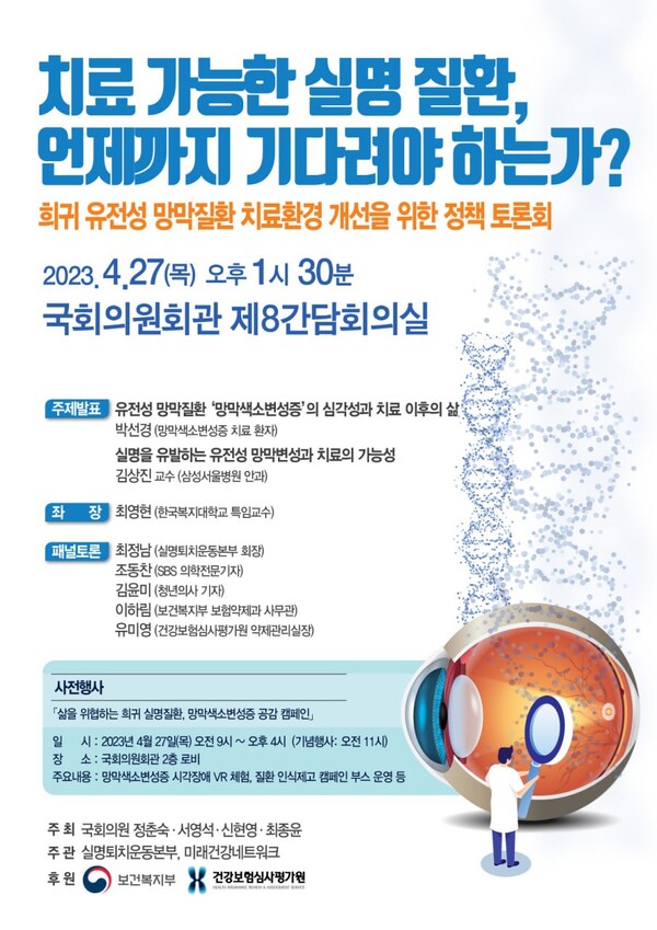 27일 '치료 가능한 실명 질환 , 언제까지 기다려야 하는가' 토론회 개최