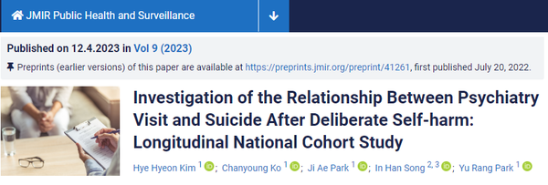연세대 의대 의생명시스템정보학교실 김혜현 박사, 고찬영 강사, 박유랑 교수 연구팀은 고의적 자해 환자가 자해 전후 정신과 진료를 받으면 자살을 시도했지만 생존하는 자살 생존율이 93.4%로, 정신과 진단을 받지 않는 경우보다 자살로 인한 사망 위험을 10% 이상 낮출 수 있다고 밝혔다.