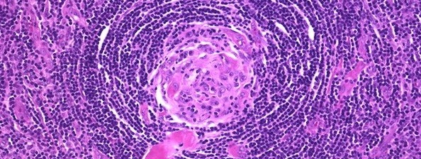 더불어 영상검사를 통해 몸 어디에서든 1cm 이상의 림프절 비대(1개면 단발성 캐슬만병, 2개 이상이면 다발성 캐슬만병)가 확인돼야 한다. 동시에 림프절 조직검사에서 양파껍질 같이 생긴 특수 모양의 병리조직(사진)이 확인돼야 한다.