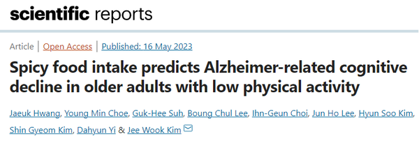 김지욱 교수는 “이번 연구는 치매가 없는 노인에서 높은 매운맛 섭취에 따른 인지기능 저하에 관한 임상적 근거를 제시한 데 의미가 있다”며 “다만 순하고 적당한 매운맛은 인지기능 저하와 연관성이 없었다는 점을 평소 식생활에 참고할 필요가 있다”고 조언했다.