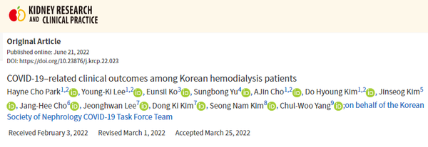 그 결과 코로나19에 감염된 혈액투석 환자의 병원 내 사망률은 22.4%로, 정상 신기능 환자의 5배가 넘었다.