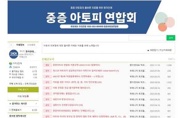 아토피와 관련된 환자들의 모임은 중아연만 있는 게 아니다. 포탈사이트에 검색만 해봐도 아토피와 관련된 카페들이 적지 않다. 처음에는 친목 도모로 시작했지만 아토피 치료제 급여 적용 등 같은 목소리를 내야 할 때가 있어 연합회로 카페명을 바꾸게 됐다.