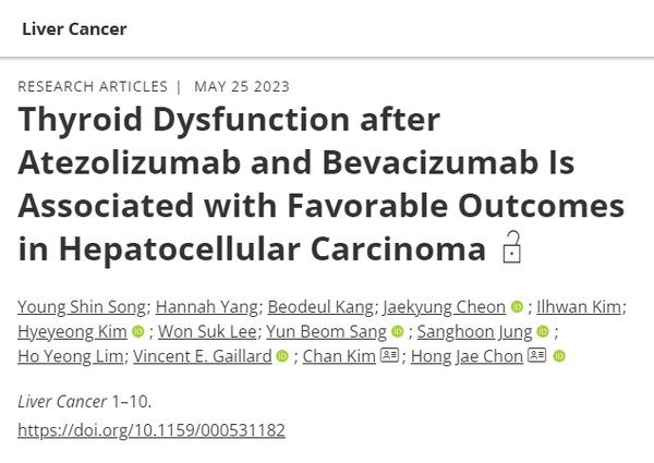 전홍재 교수는 “이번 연구가 진료현장에서 간암환자들의 치료 전략과 환자 관리의 새로운 치료법을 제시할 것으로 기대한다”며 “갑상선기능 부작용은 항암치료 시 20% 정도의 환자에게 나타나는 부작용으로, 정기적인 검사와 적절한 치료를 통해 충분히 관리가 가능해 티쏀트릭, 아바스틴 병합치료가 간암 환자 치료 효과를 예측할 수 있는 마커로 사용할 수 있을 것으로 보인다”고 밝혔다.