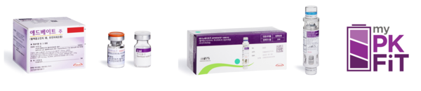 한국다케다제약은 애드베이트주 또는 애디노베이트주를 투여 받는 혈우병 A 환자들에게 ‘마이피케이핏(이하, myPKFiT)’을 제공함으로써 예방요법을 위한 개인 맞춤형 치료를 지원하고 있다. myPKFiT은 집단약동학을 기반으로 한 의료기기로, myPKFiT 의료진용 웹 기반 소프트웨어를 사용하면 단 2회의 채혈로 개별 환자의 PK 정보 추정치를 획득하고 이를 바탕으로 혈액응고 8인자 투여 용량에 따른 개별 환자의 8인자 활성도를 시간대별로 예측할 수 있다.