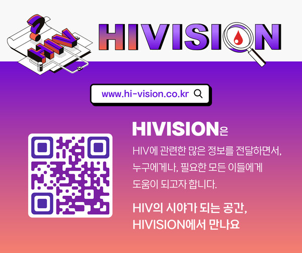 하이비전(hi-vision.co.kr)은 HIV의 시야가 되는 공간이라는 의미로, HIV에 대한 잘못된 정보를 바로잡고 올바른 인식을 세우기 위해 개설됐다. 하이비전은 HIV에 대한 검사부터 예방까지 관련된 정보를 일원화해 정보 접근성을 높인다는 취지로 HIV에 대한 ▲질환 정보 ▲진단 ▲치료 ▲인식 개선을 위한 캠페인 ▲예방 ▲검사를 위한 보건소 찾기 ▲자주 묻는 질문(FAQ) 등으로 구성돼 있다.