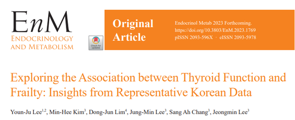 이정민 교수는 “이번 연구는 갑상선 기능과 노쇠 사이의 관련성을 밝혀내 고령 인구의 건강관리에 새로운 지표와 시각을 제공했다는 점에서 의미가 있다”면서 “갑상선 기능 장애와 노쇠 위험 증가의 연관성이 확인된 만큼 더욱 세심한 갑상선 환자 치료와 질환 예방을 위한 노력이 필요하다”고 밝혔다.