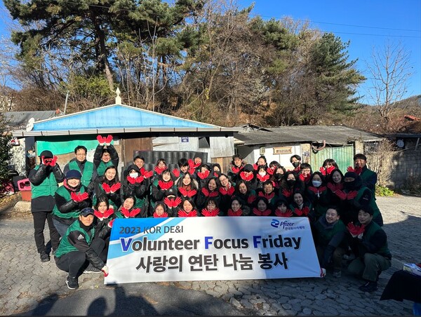 한국화이자제약(대표이사 사장 오동욱)이 지역사회 나눔을 실천하기 위해 지난달 24일 밥상공동체복지재단 연탄은행과 함께 연탄 기부 및 연탄 나르기 봉사활동을 진행했다.