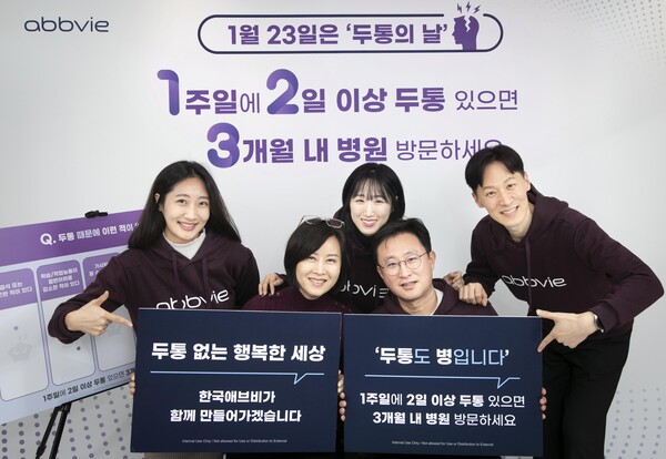 한국애브비(대표이사 강소영)가 1월 23일 두통의 날을 맞아 임직원 대상으로 두통 및 편두통에 대한 올바른 질환 인식과 이해를 돕기 위한 ‘123 사내 이벤트’를 진행했다.