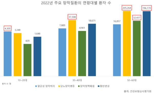한편 망막에 이상이 생긴 초기는 자각증상이 뚜렷하지 않아 정기 안과 검진을 통해 조기에 발견‧치료하는 것이 중요하다. 보통 ‘망막질환’이라고 하면 노화로 인한 황반변성을 떠올리기 쉽다. 하지만 망막질환은 연령대에 따라 발병양상이 다른 만큼 모든 연령대에서 주의해야 한다.