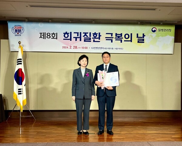 원주세브란스기독병원 소아청소년과 강윤구 교수가 지난달 28일 ‘제8회 희귀질환 극복의 날’ 기념행사에서 질병관리청장 표창을 수상했다.
