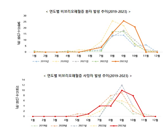 비브리오패혈균은 해수온도가 18℃ 이상일 때 증식하는 것으로 알려져 있으며, 호염성 세균으로 주로 해수, 해하수, 갯벌, 어패류 등 광범위한 연안 해양 환경에서 자유롭게 서식한다. 비브리오패혈증은 매년 5~6월경에 발생하기 시작해 8~9월에 가장 많이 발생하는데, 지난해에는 비브리오패혈증 환자의 91.3%가 8~10월에 발생했다.