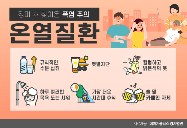 에이치플러스 양지병원 가정의학과 정휘수 전문의는 “심뇌혈관성 만성질환자는 물론 경동맥이나 뇌동맥 협착증이 있는 환자는 탈수 현상에 의한 뇌졸증 비율이 겨울 보다 여름에 높다”며 “건강수칙을 지켜 온열질환에 대처하는 것이 중요하다”고 말했다.