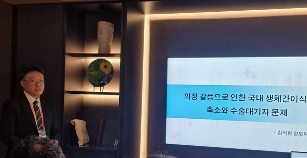 김석환 정보위원장은 "이번 설문조사에서 어떤 병원 같은 경우는 생체간이식프로그램을 진행하지 않기로 한 대학병원도 존재할 정도로 현재 전국적으로 커다란 문제가 되고 있다"며 "서울의 빅5병원 중에서는 생체간이식수술 대기가 6개월 이상 또는 1년 이상 밀려 있다"고 설명했다.