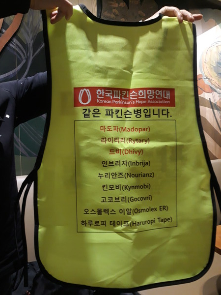 '파킨슨병 연관 키워드'와 '파킨슨병 환자들에게 절실한 국내 미도입 약제'가 쓰여진 조끼를 파킨슨희망연대 회원들이 입고, 국민들에게 파킨슨병에 대해 본격적으로 알리는 '파킨슨병 바로 알기' 캠페인을 진행한 것이다. 이번 캠페인 조끼에 마도파, 라이타리, 드비, 인브리자, 누리안즈, 킨모비, 고코브리, 오스몰렉스 이알, 라루로피 테이프 같은 약제 이름을 넣은 이유가 있다.